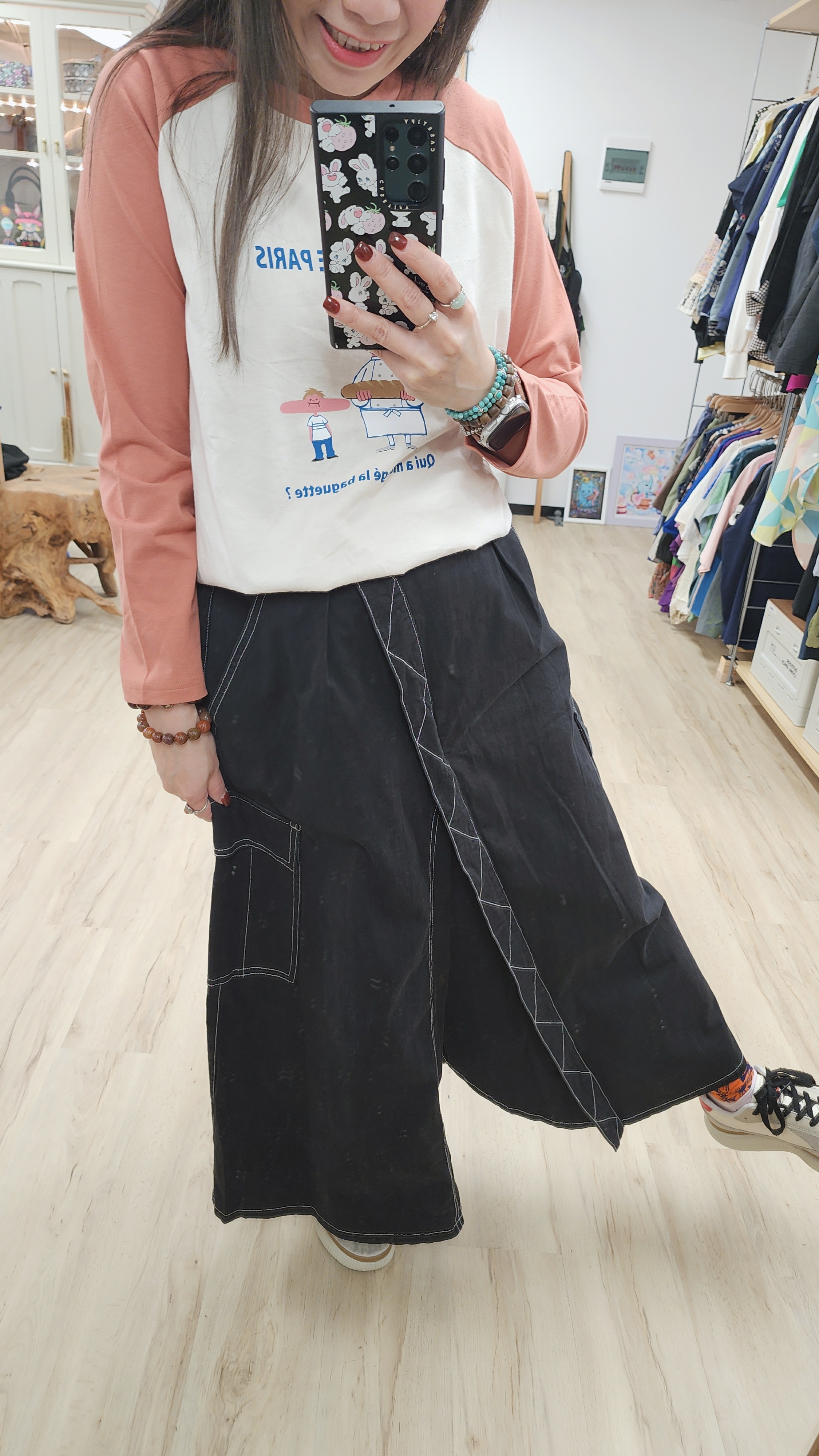 韓國抹茶綠拼兩側束袋橡筋裙褲
