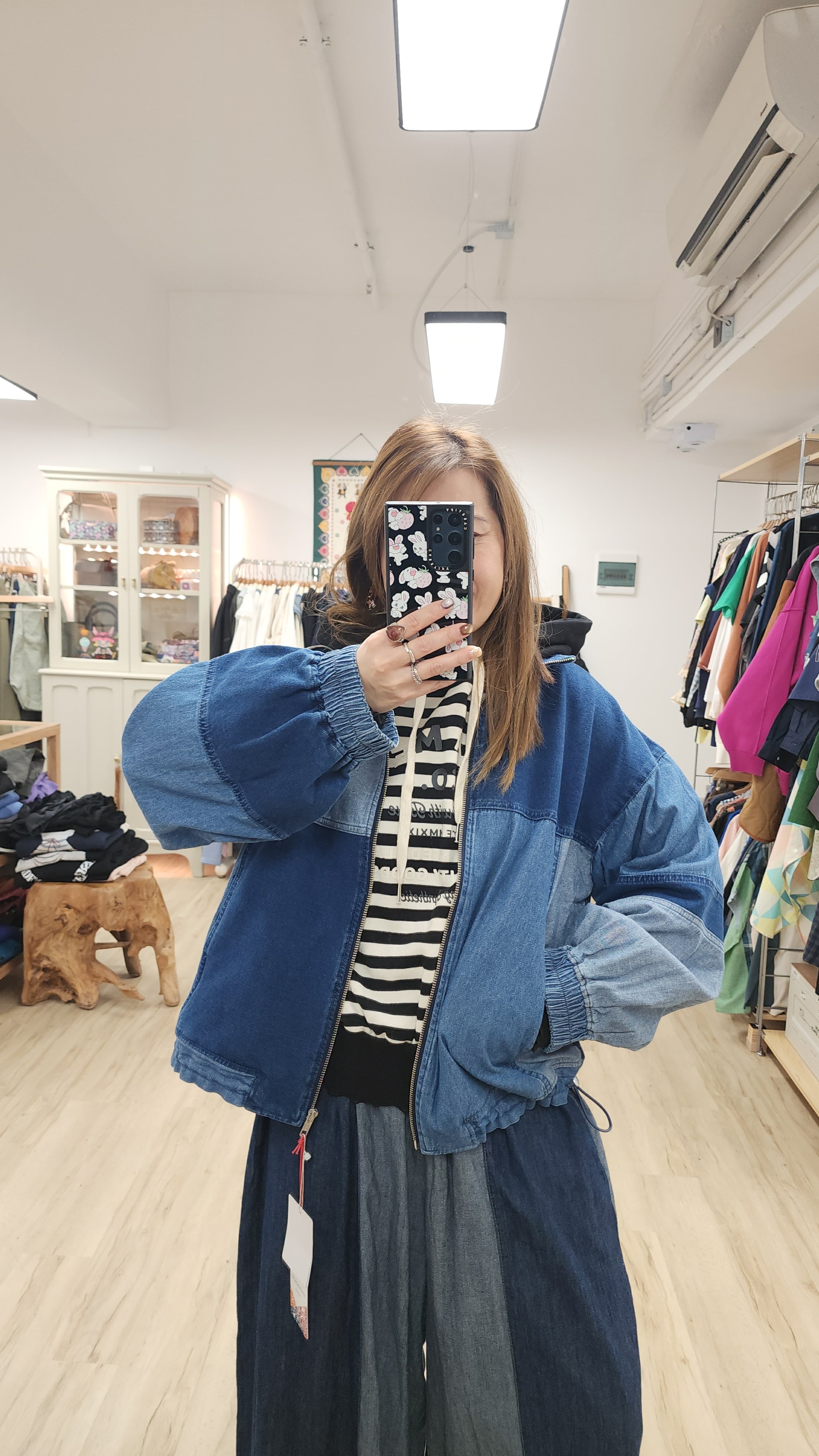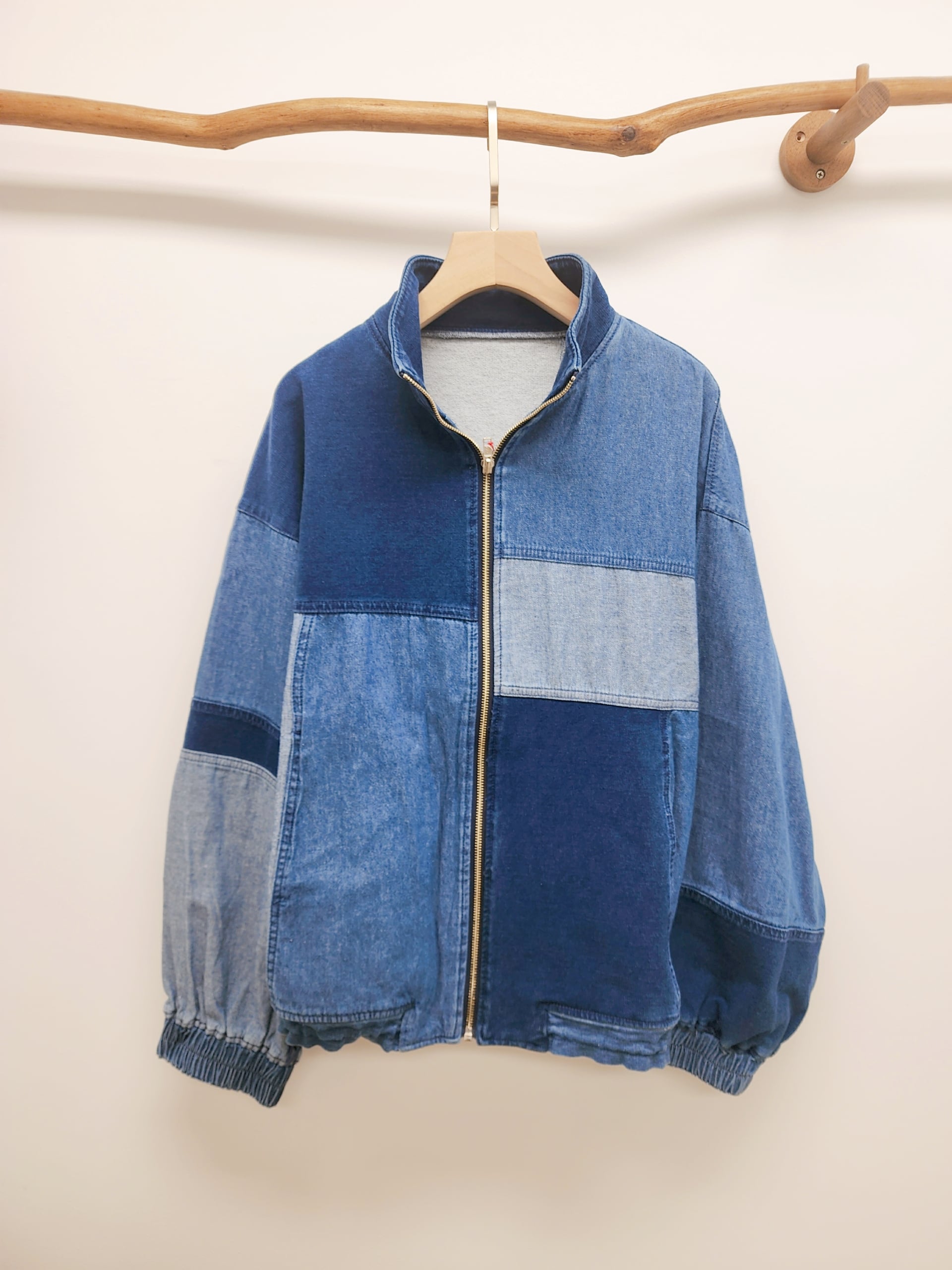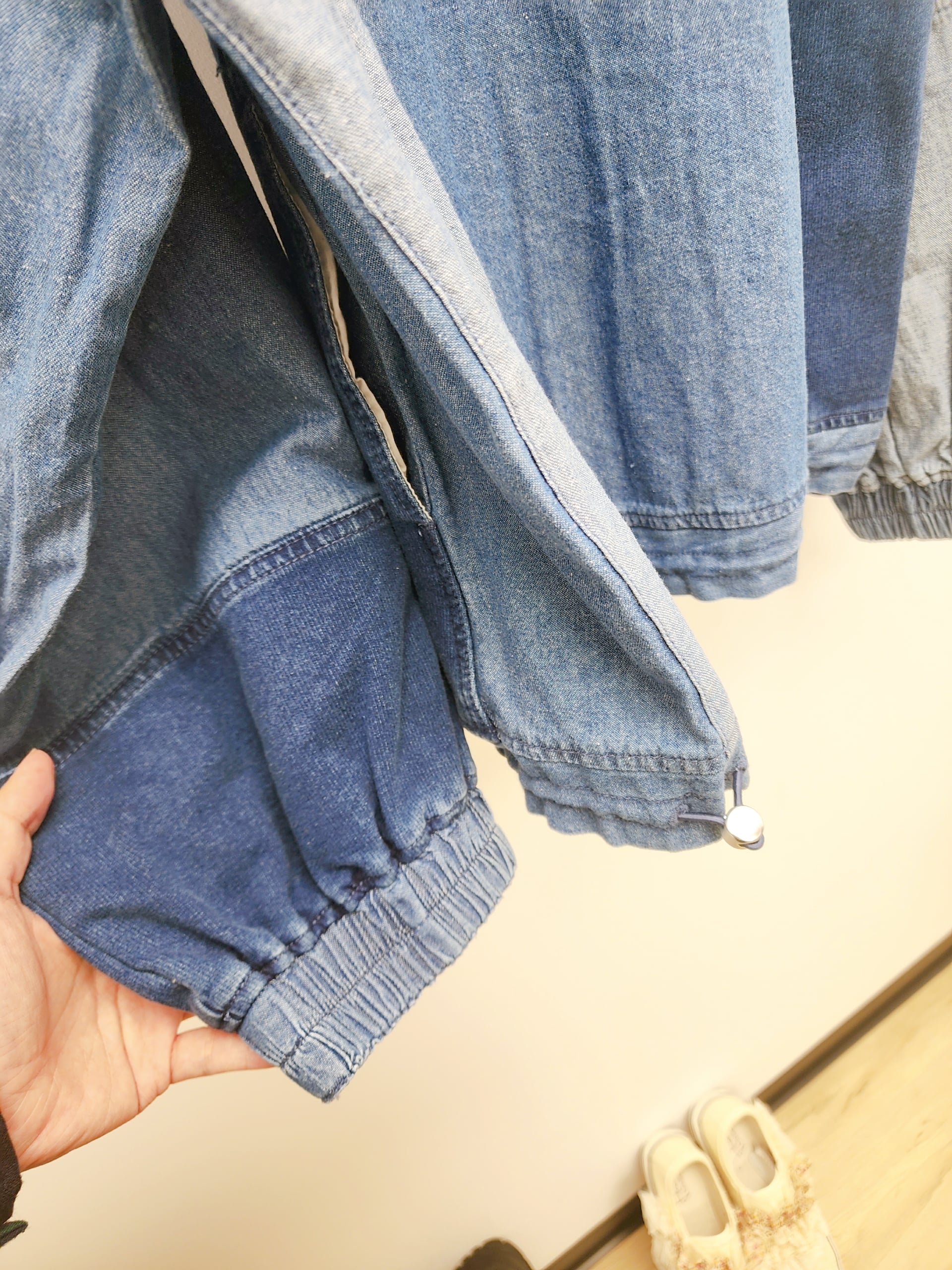日牌深中淺藍拉鏈闊牛仔褸