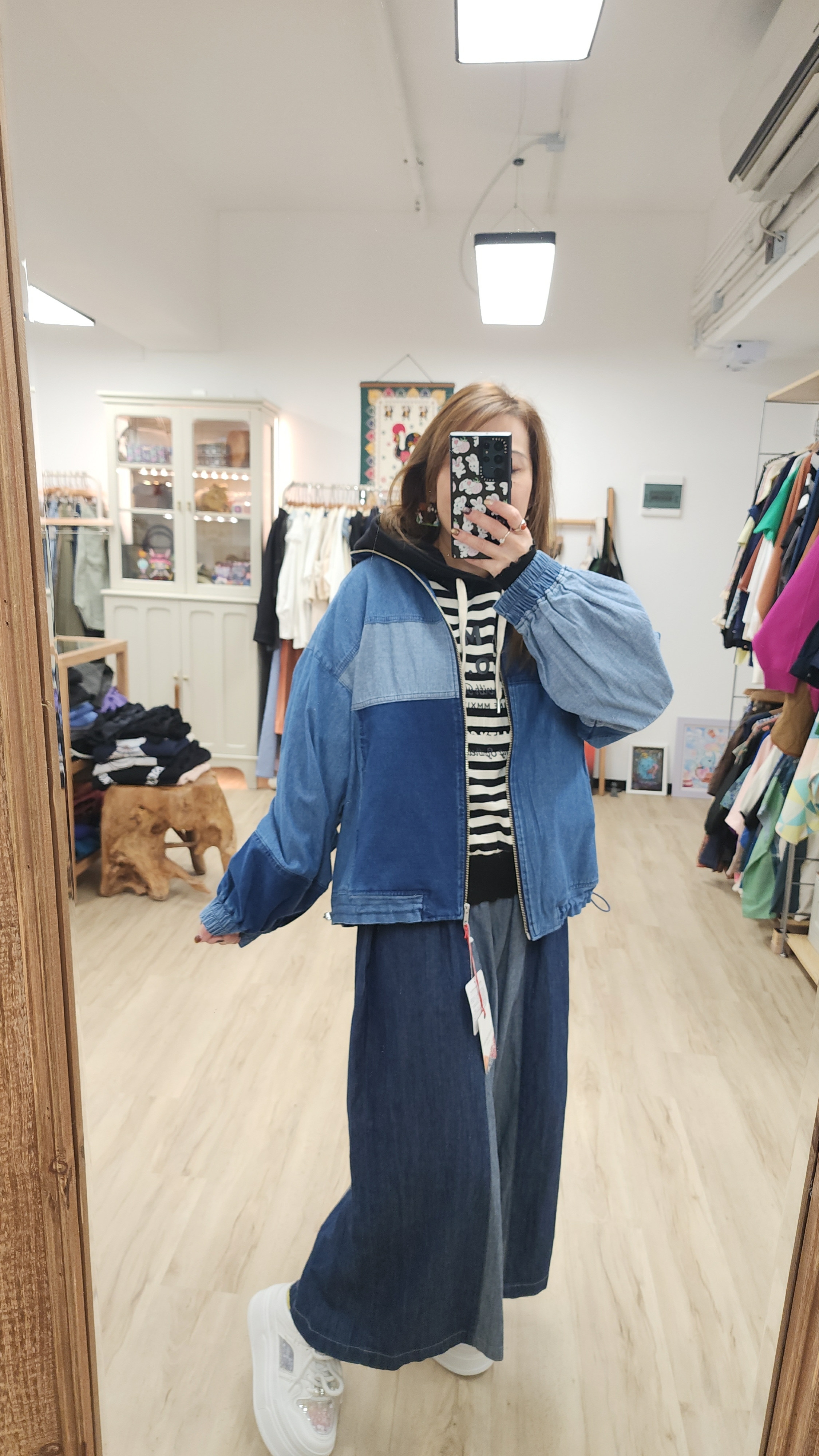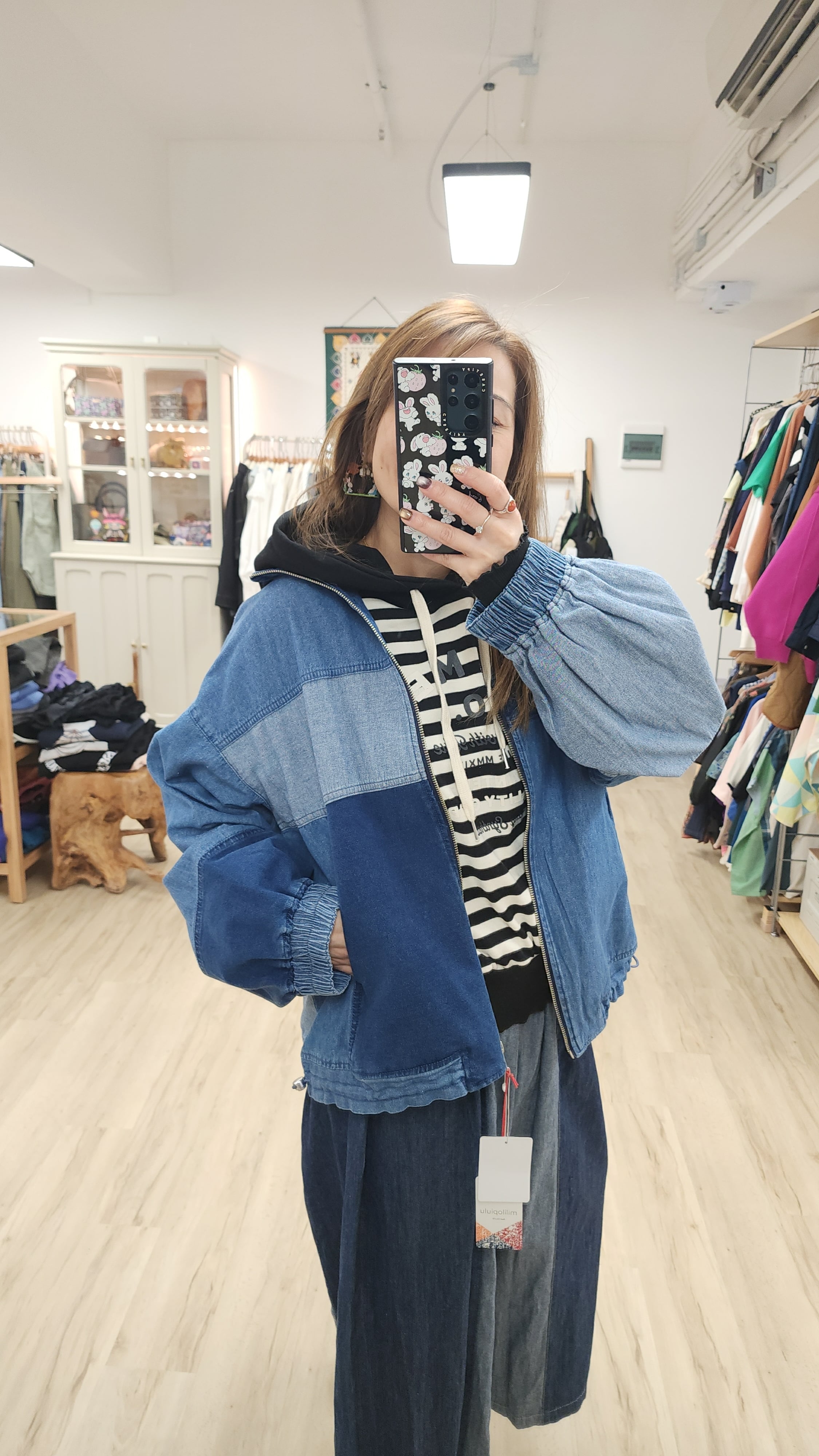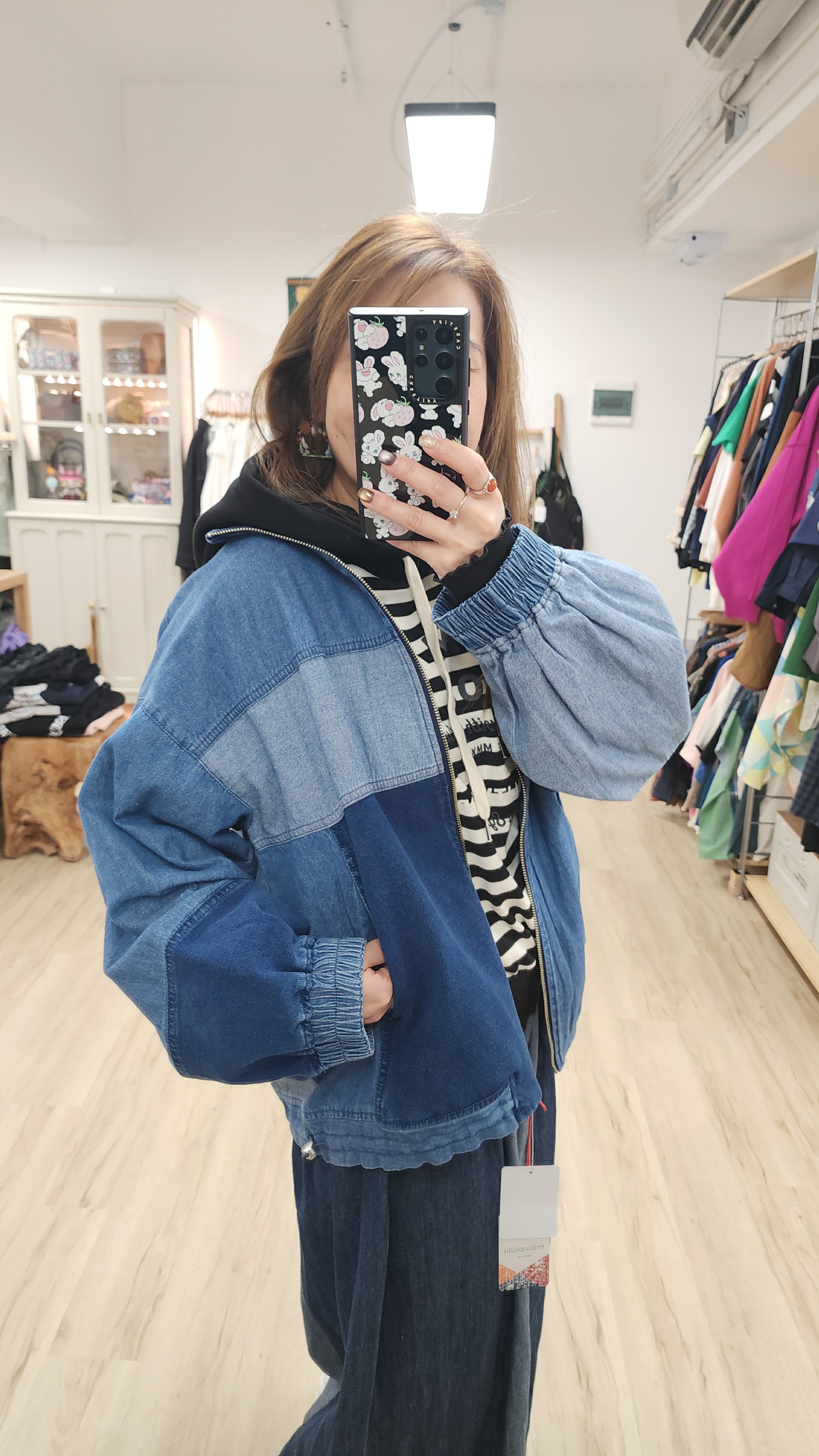 日牌深中淺藍拉鏈闊牛仔褸