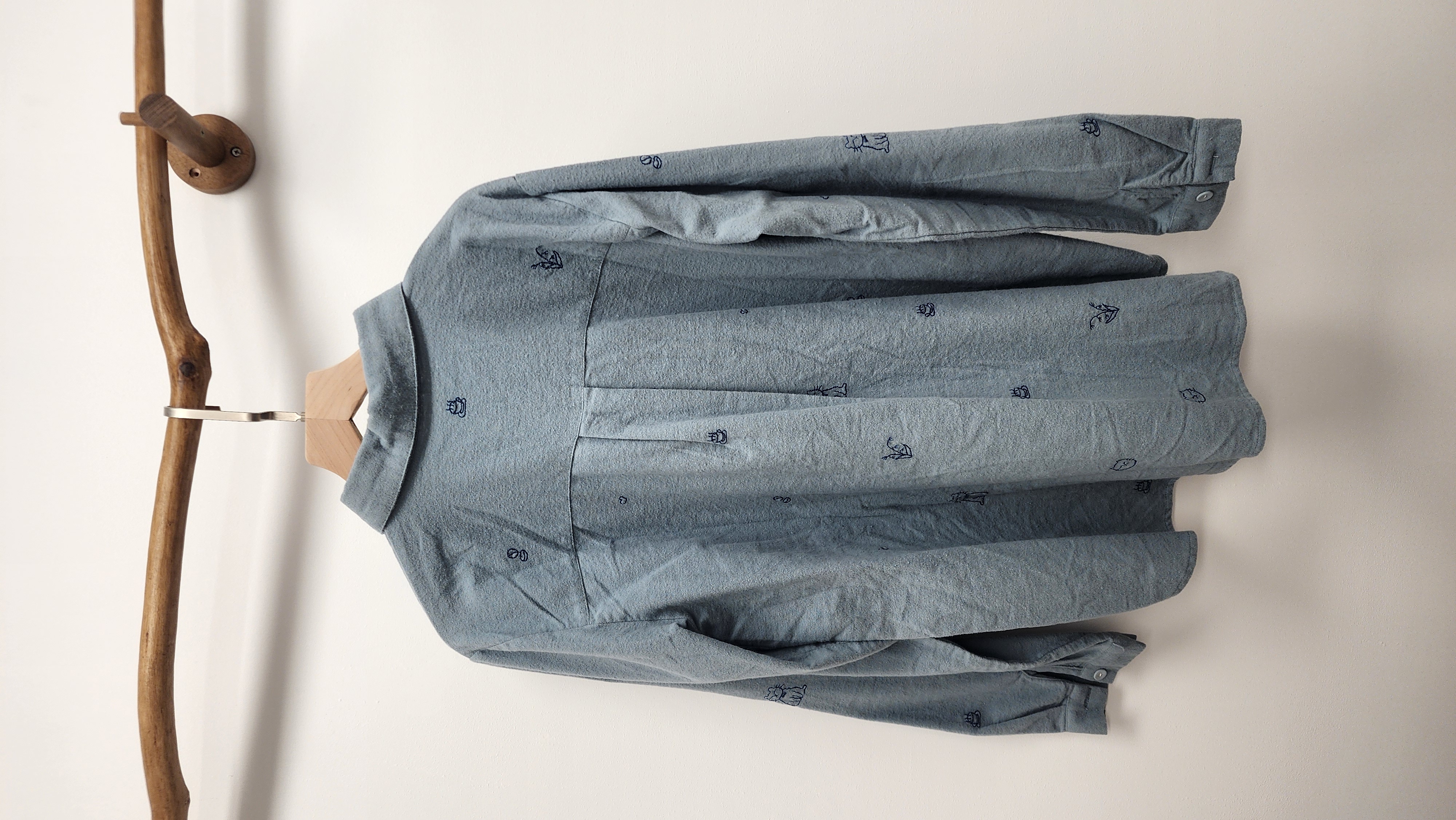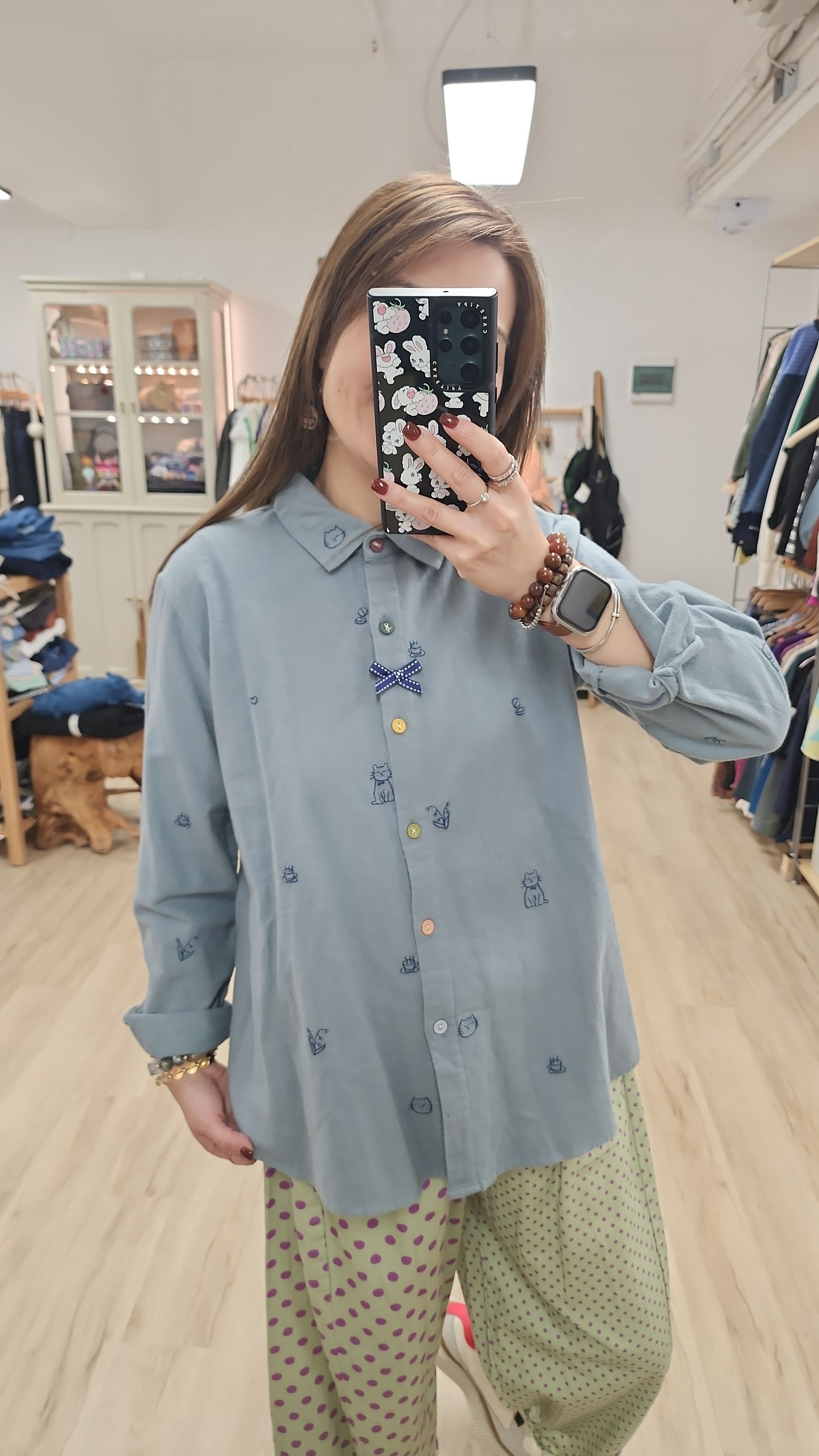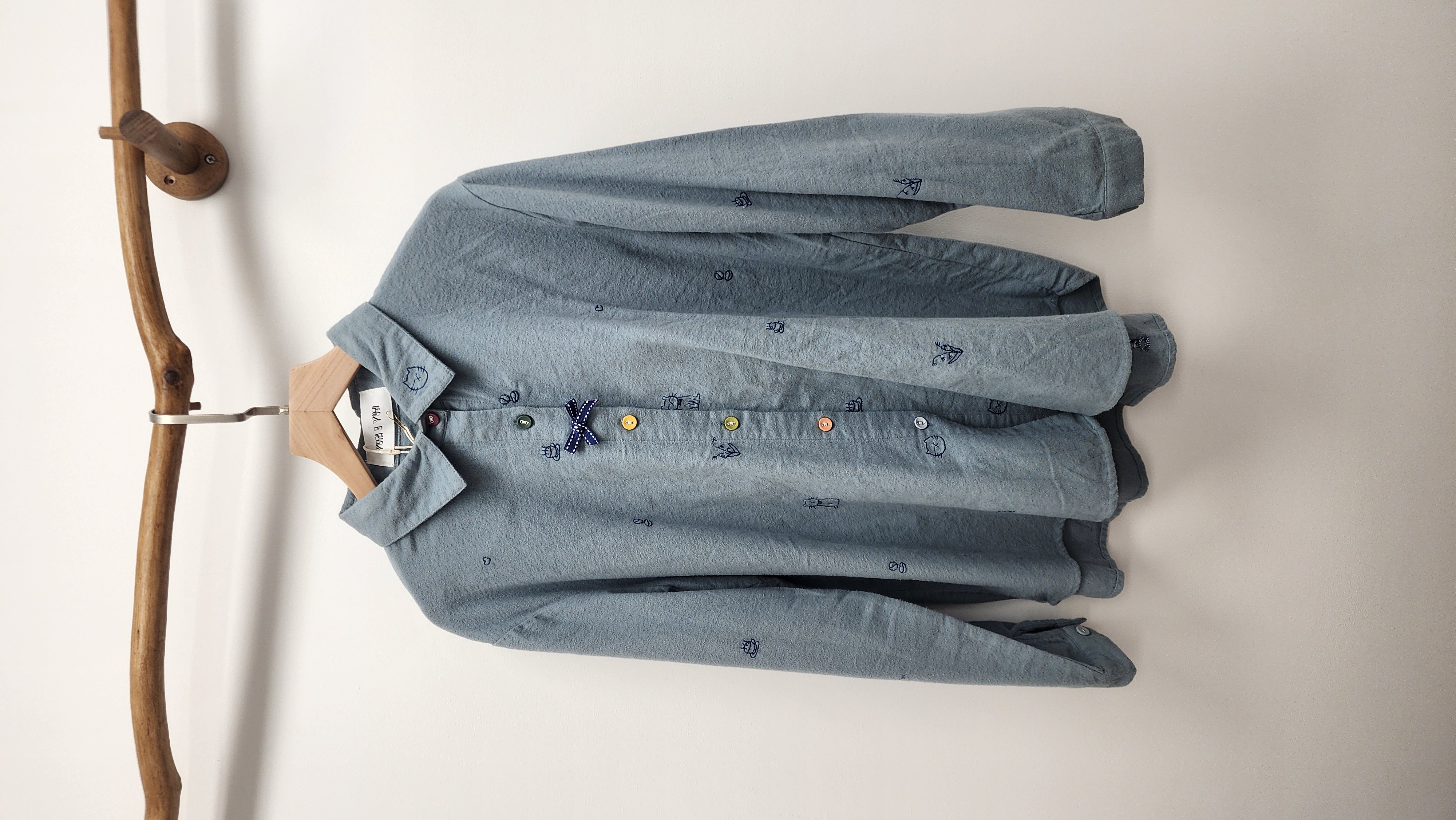 日牌藍拼小刺繡棉開胸裇