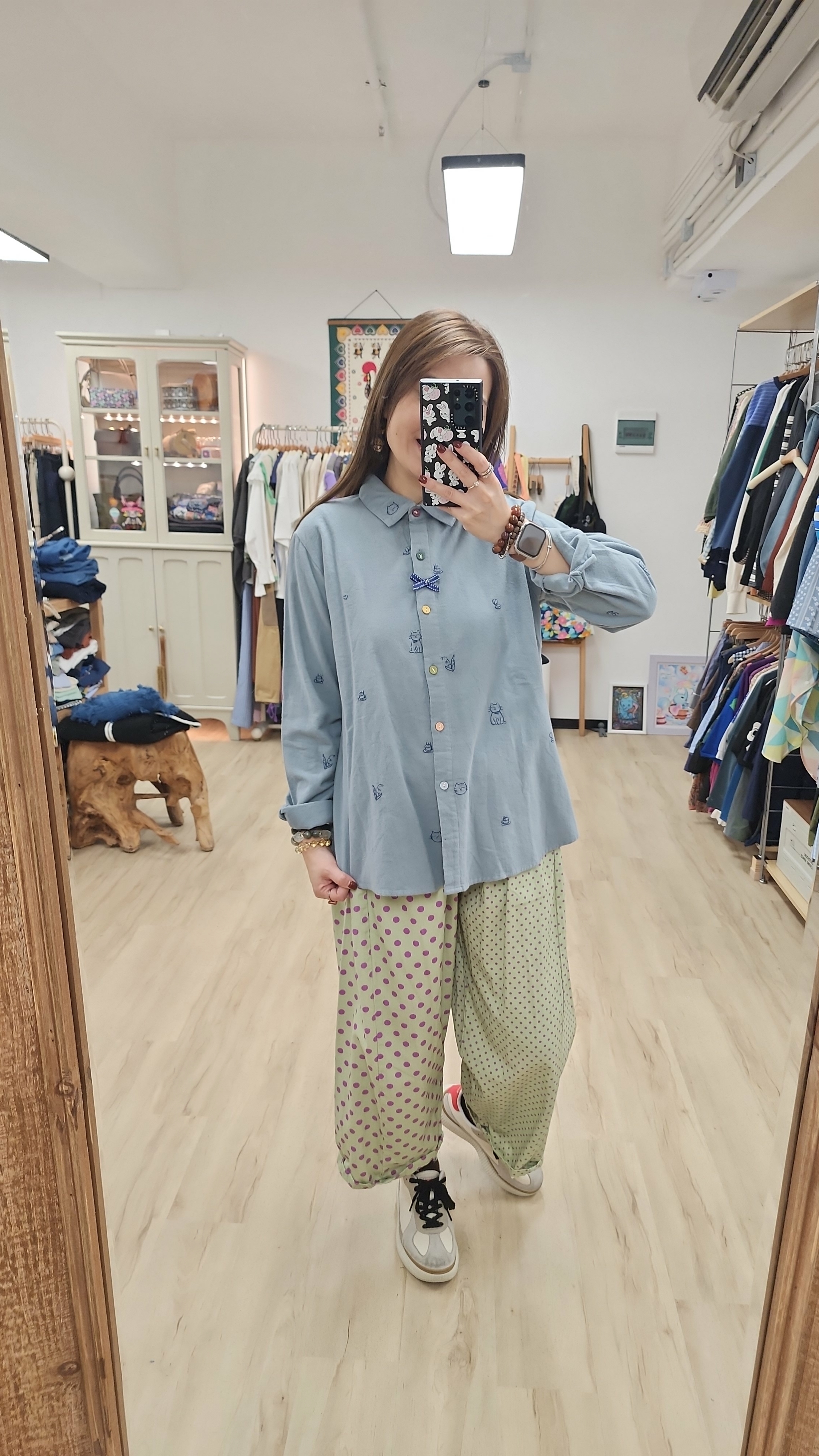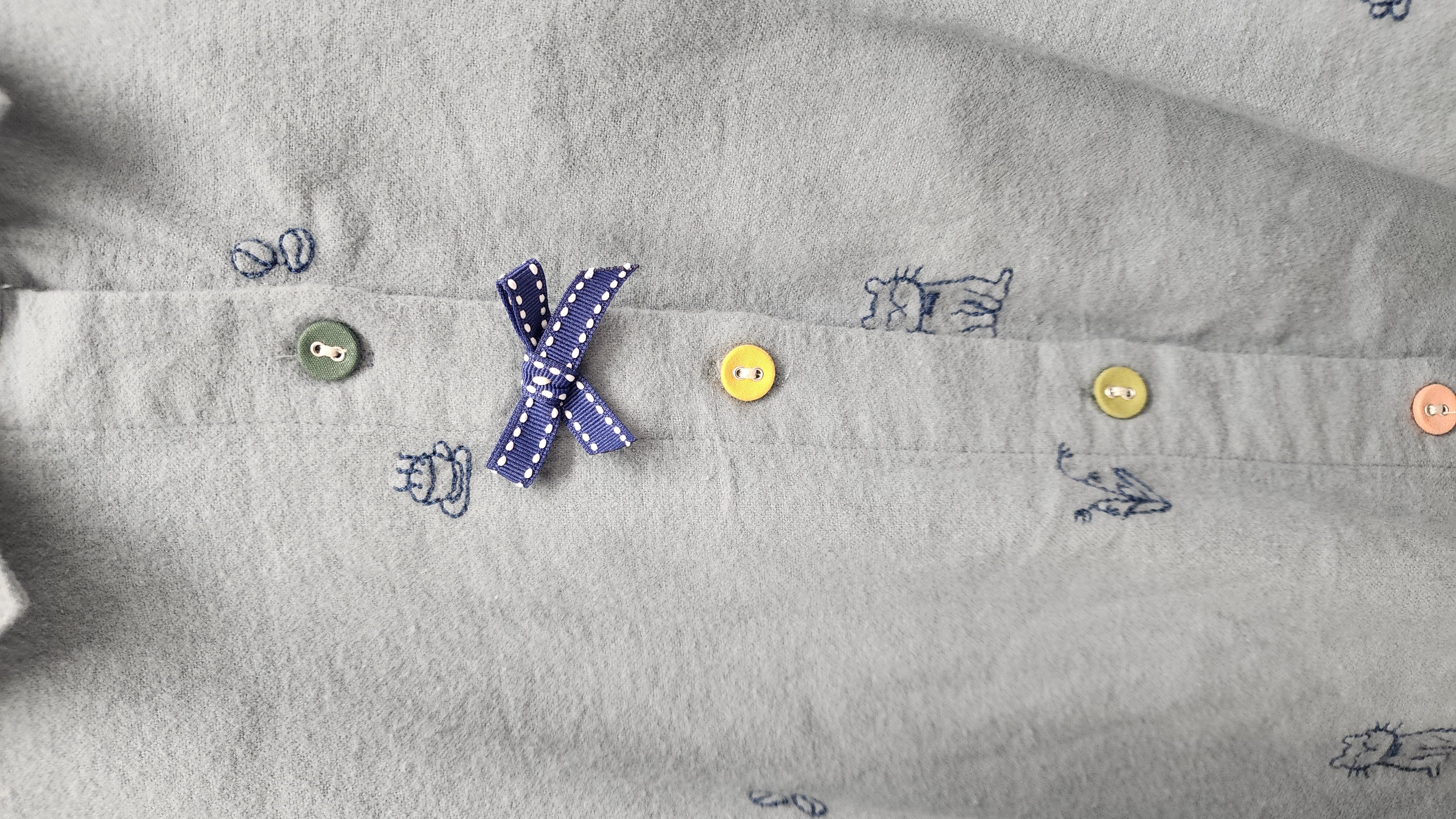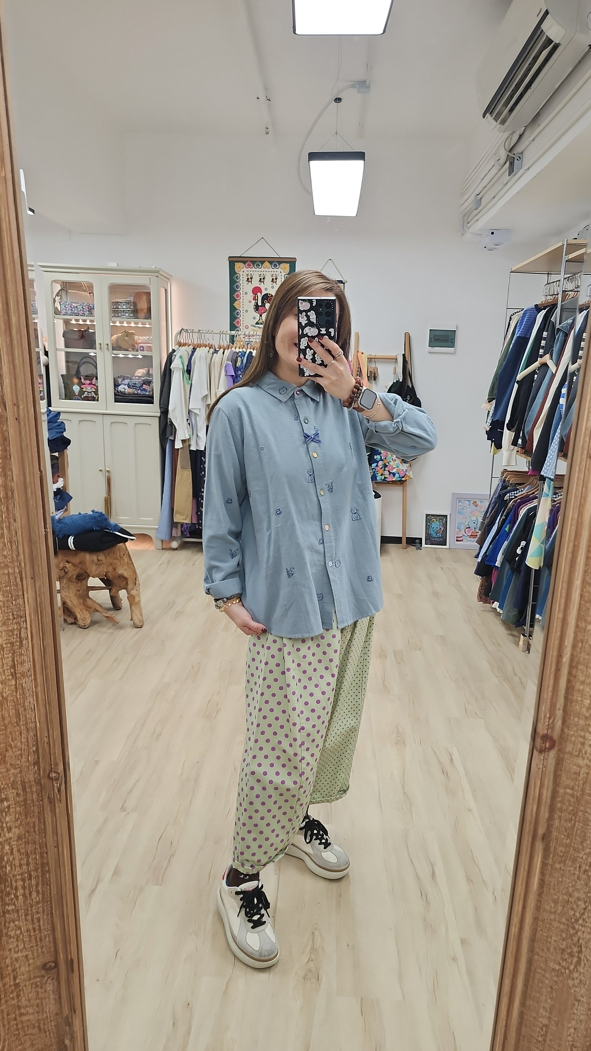日牌藍拼小刺繡棉開胸裇