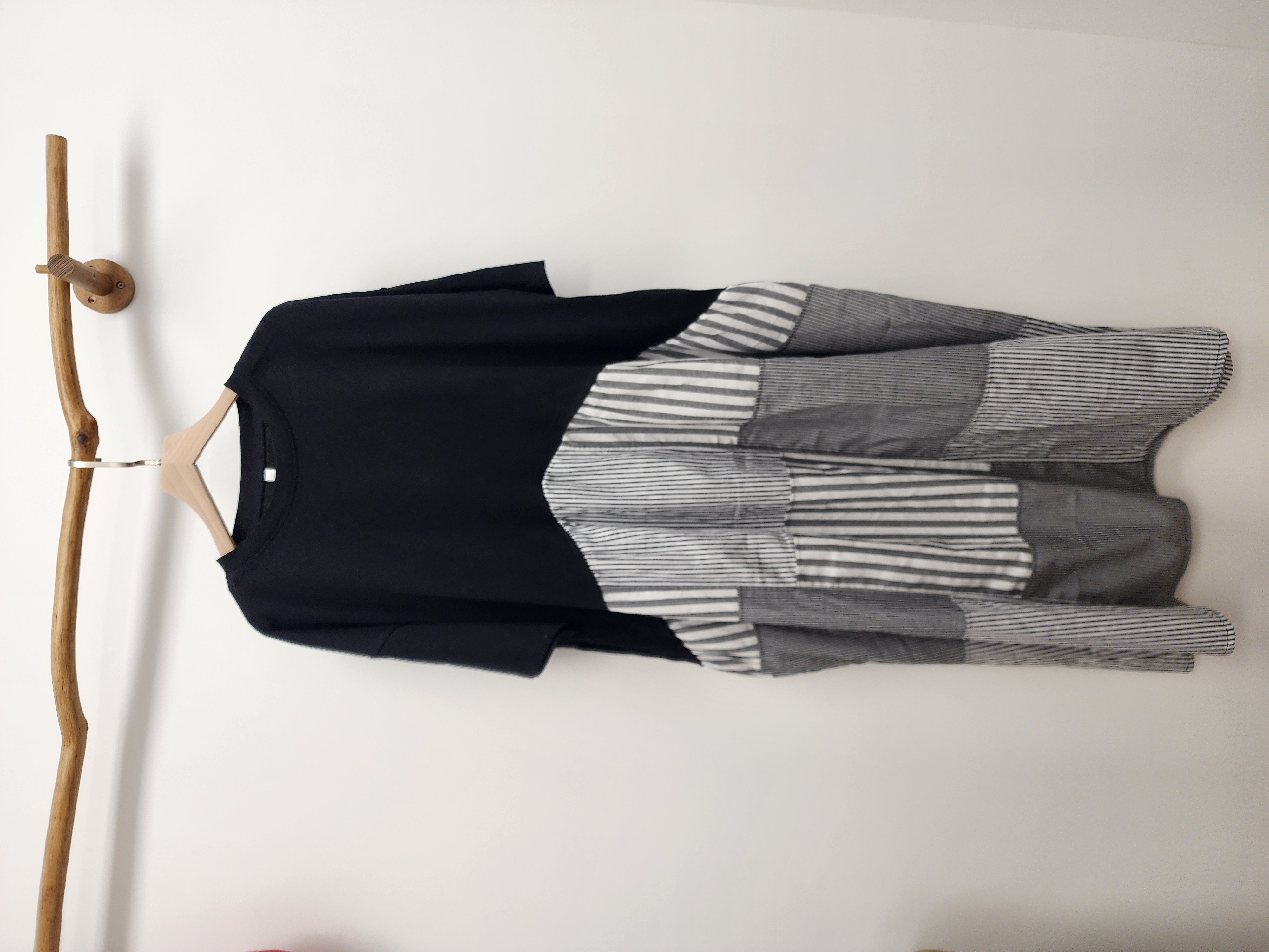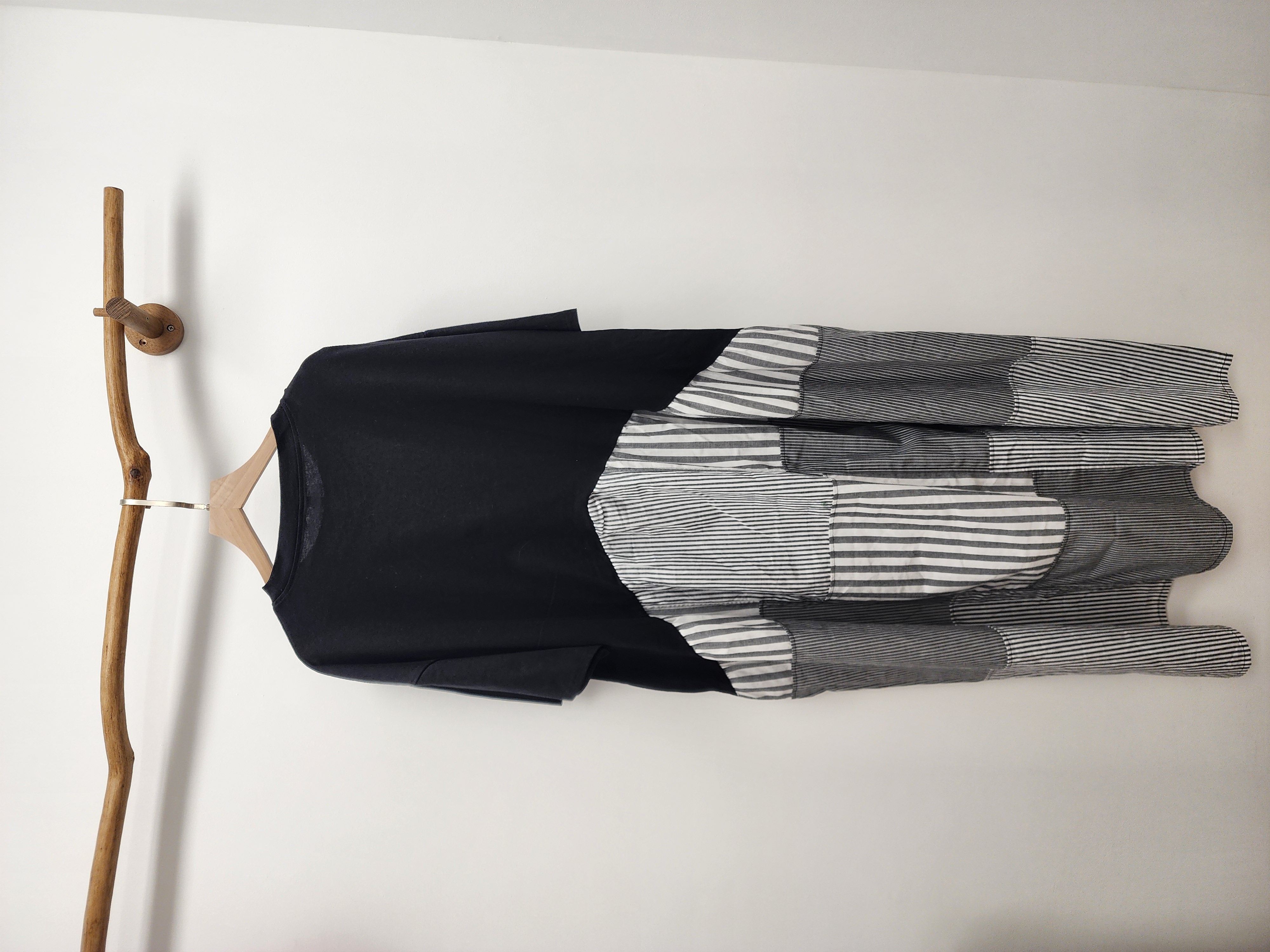 日牌黑拼粗幼條子連身裙