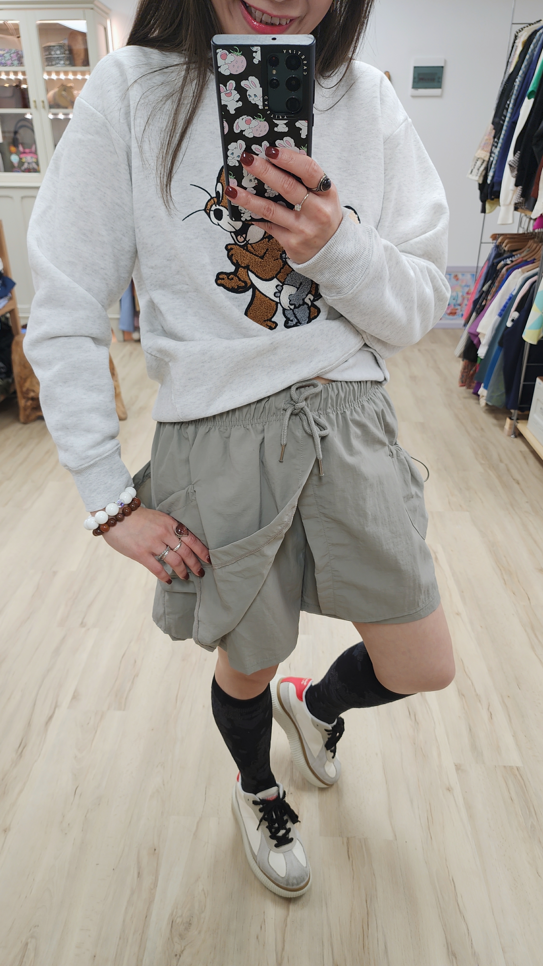 韓國抹茶綠拼兩側束袋橡筋裙褲