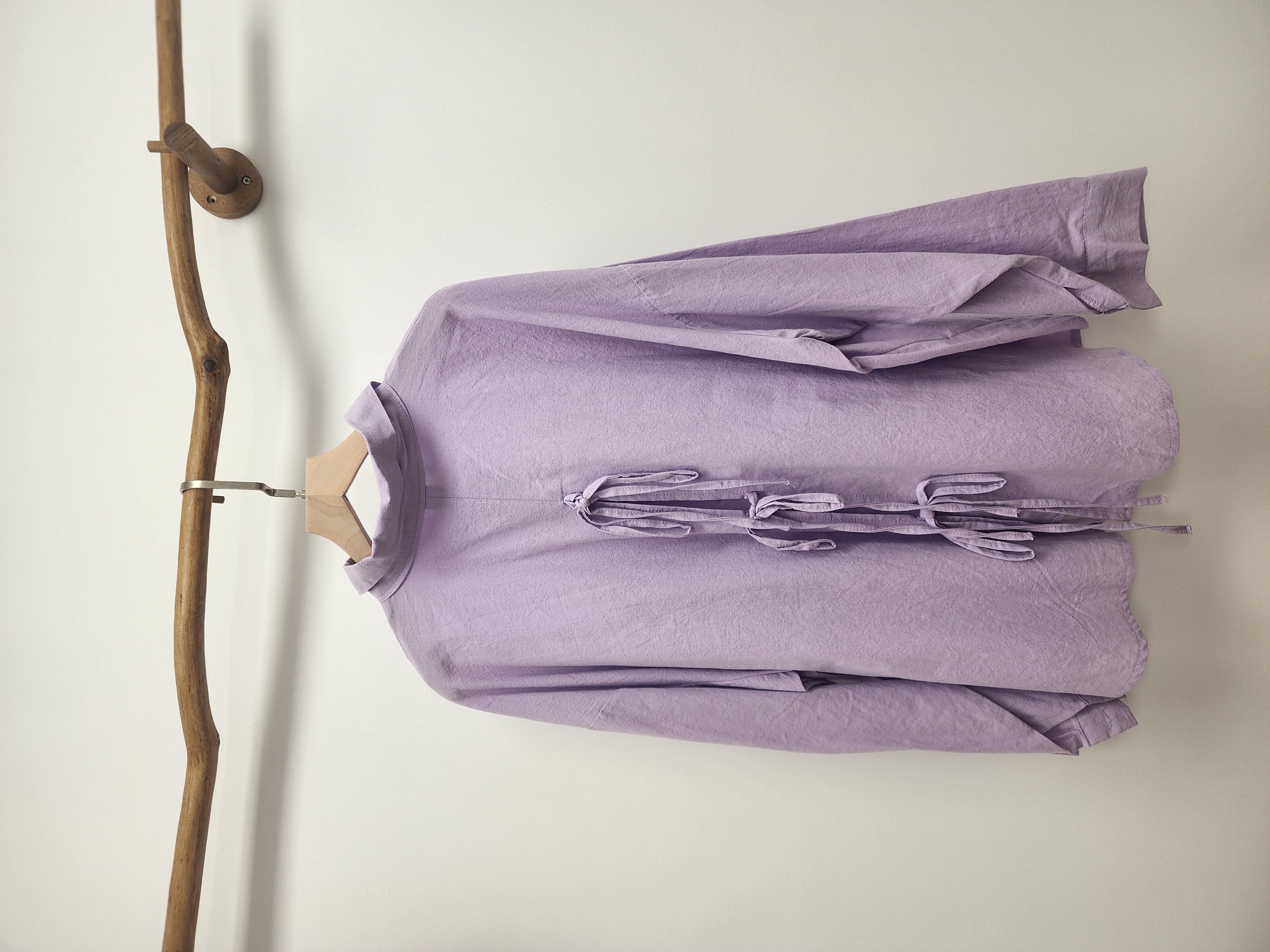 韓國粉紫背綁蝴蝶結棉麻裇