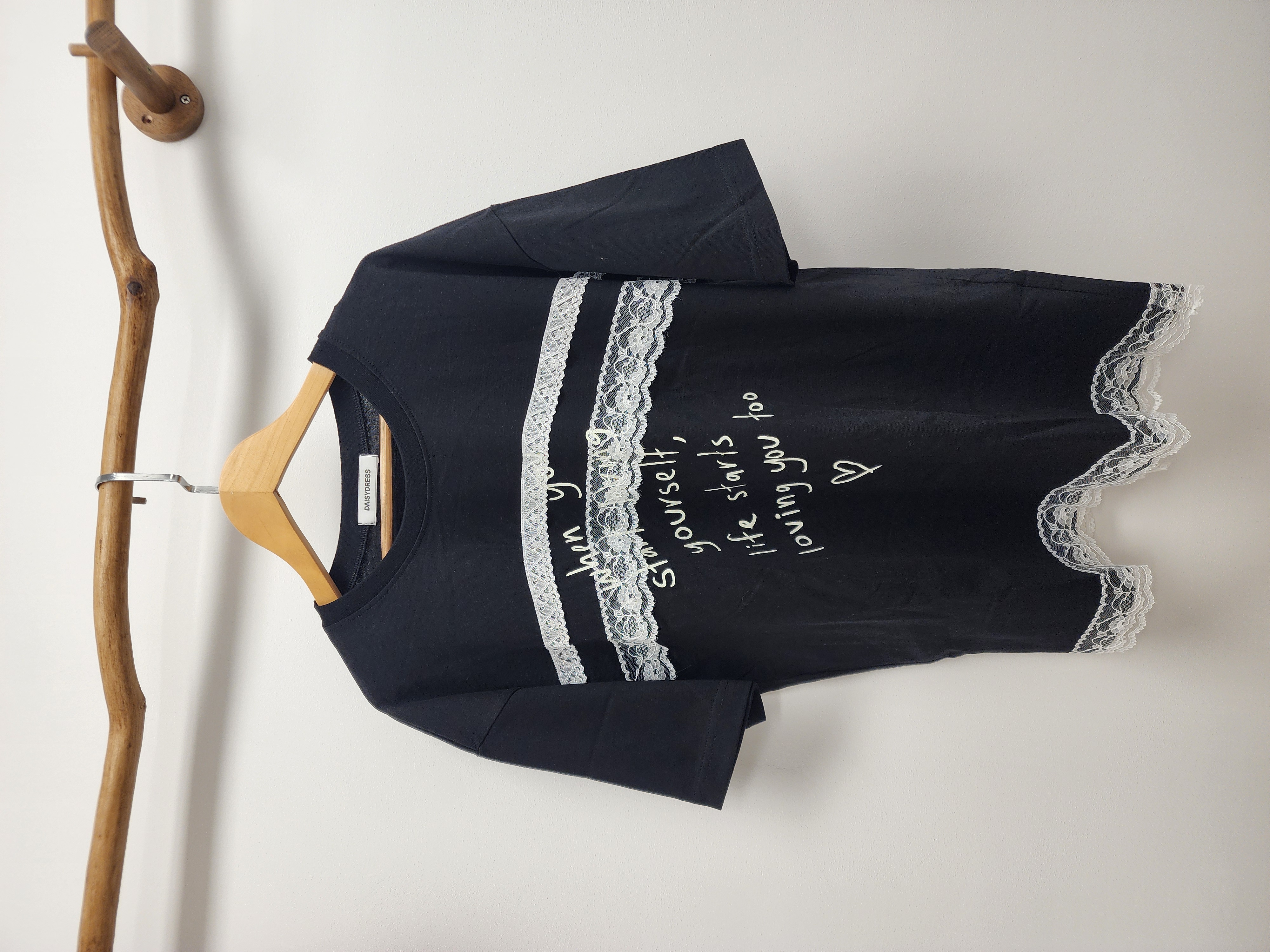 韓國黑拼喱士字母印圖Tee