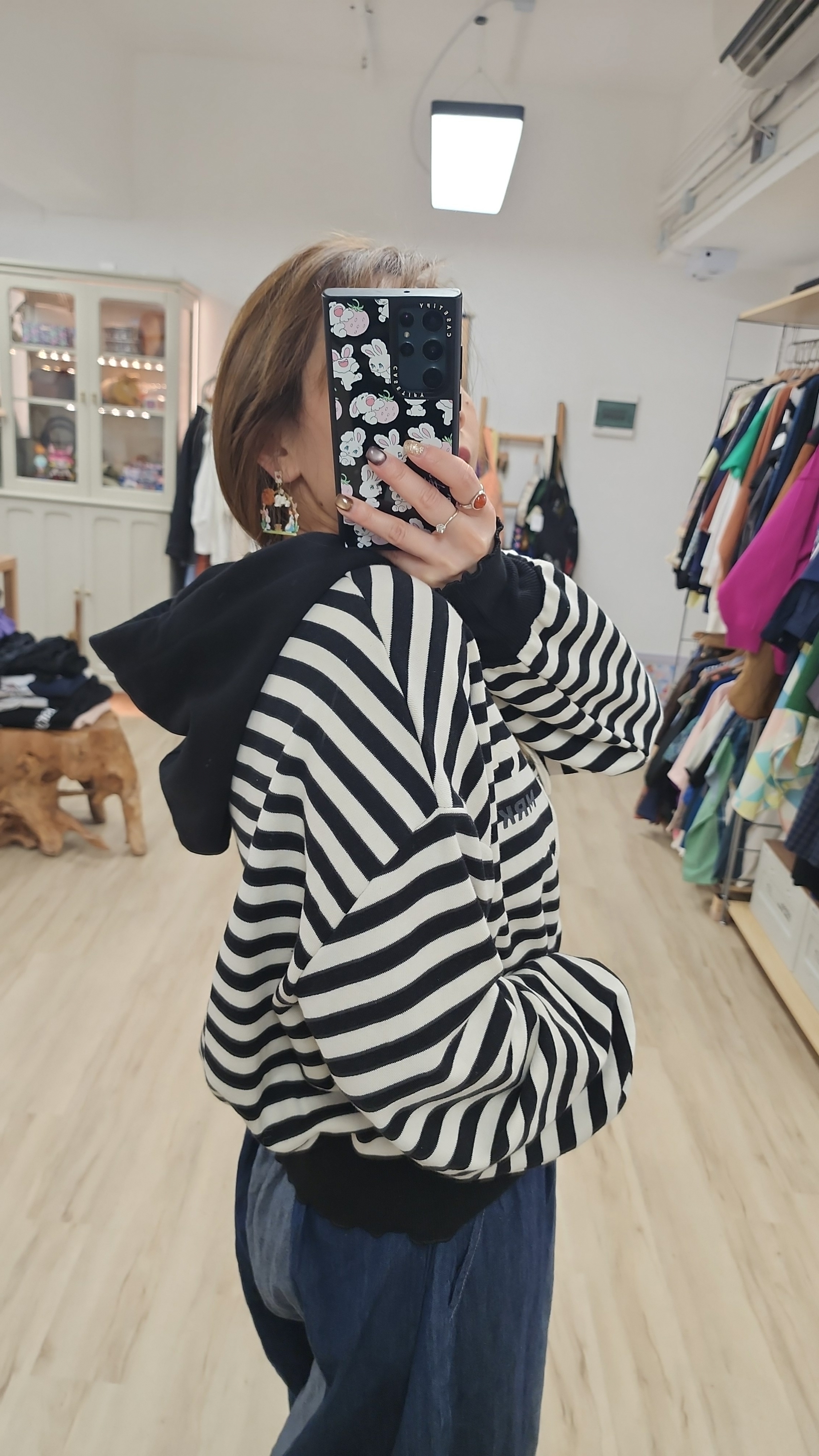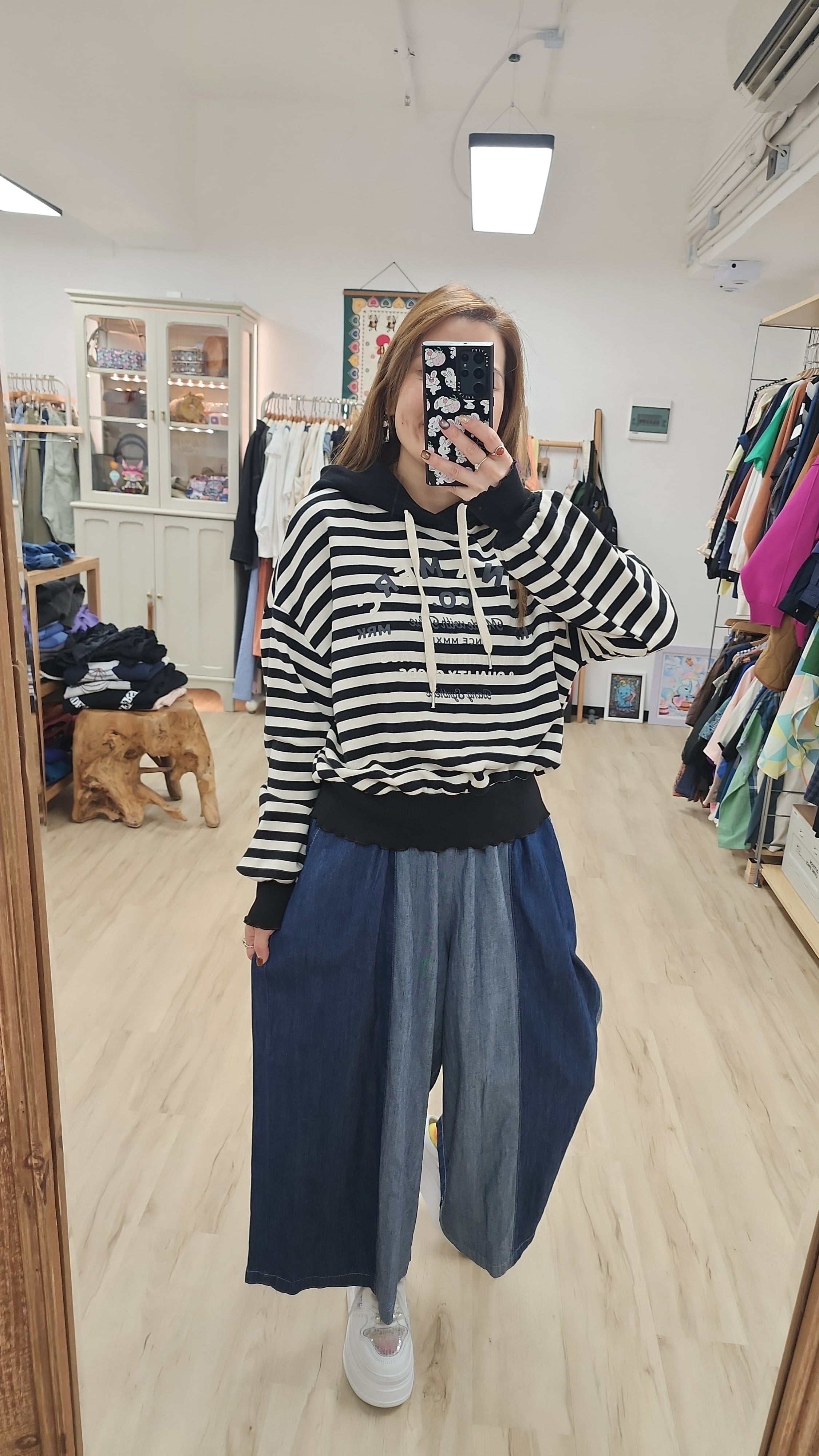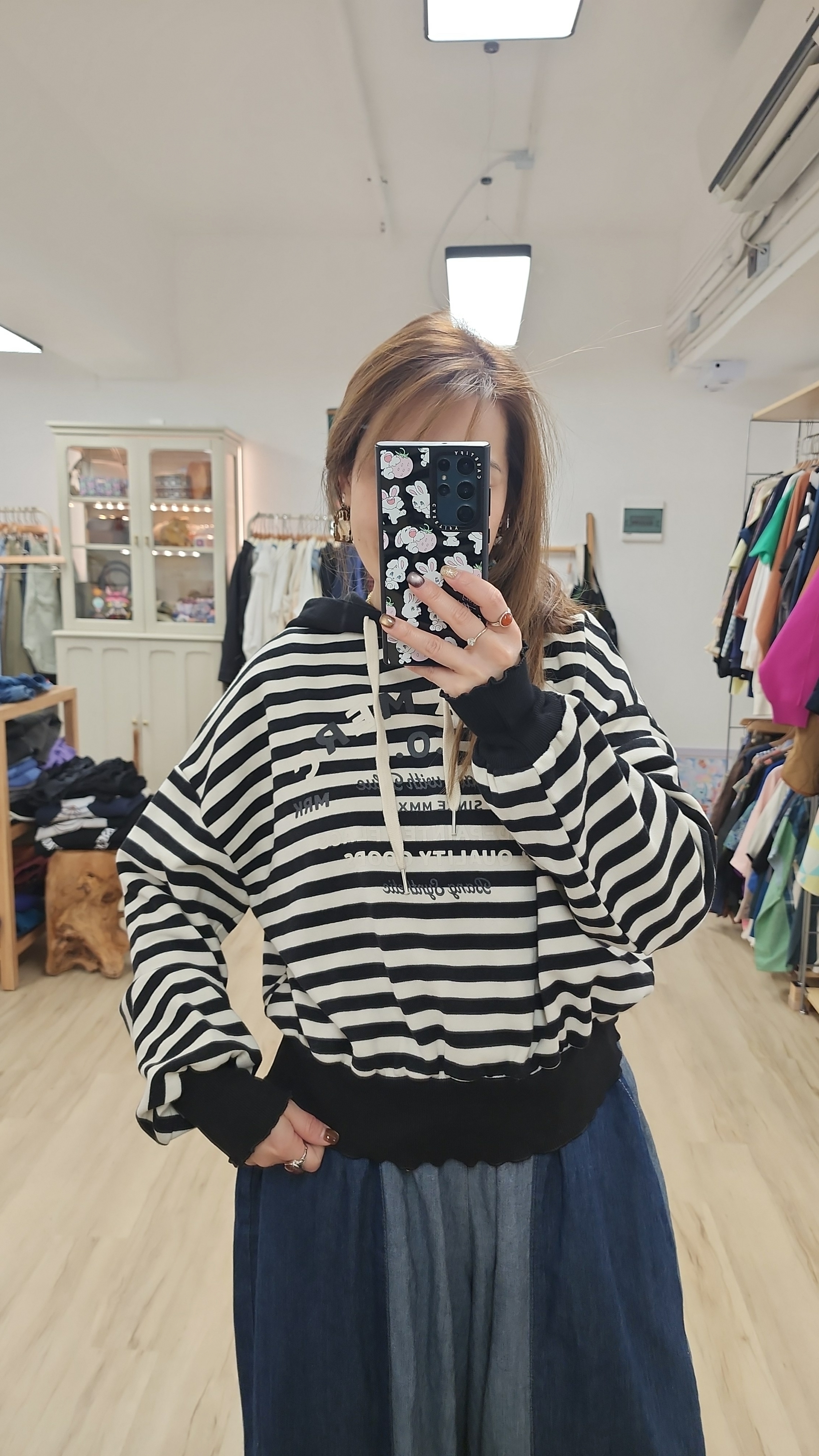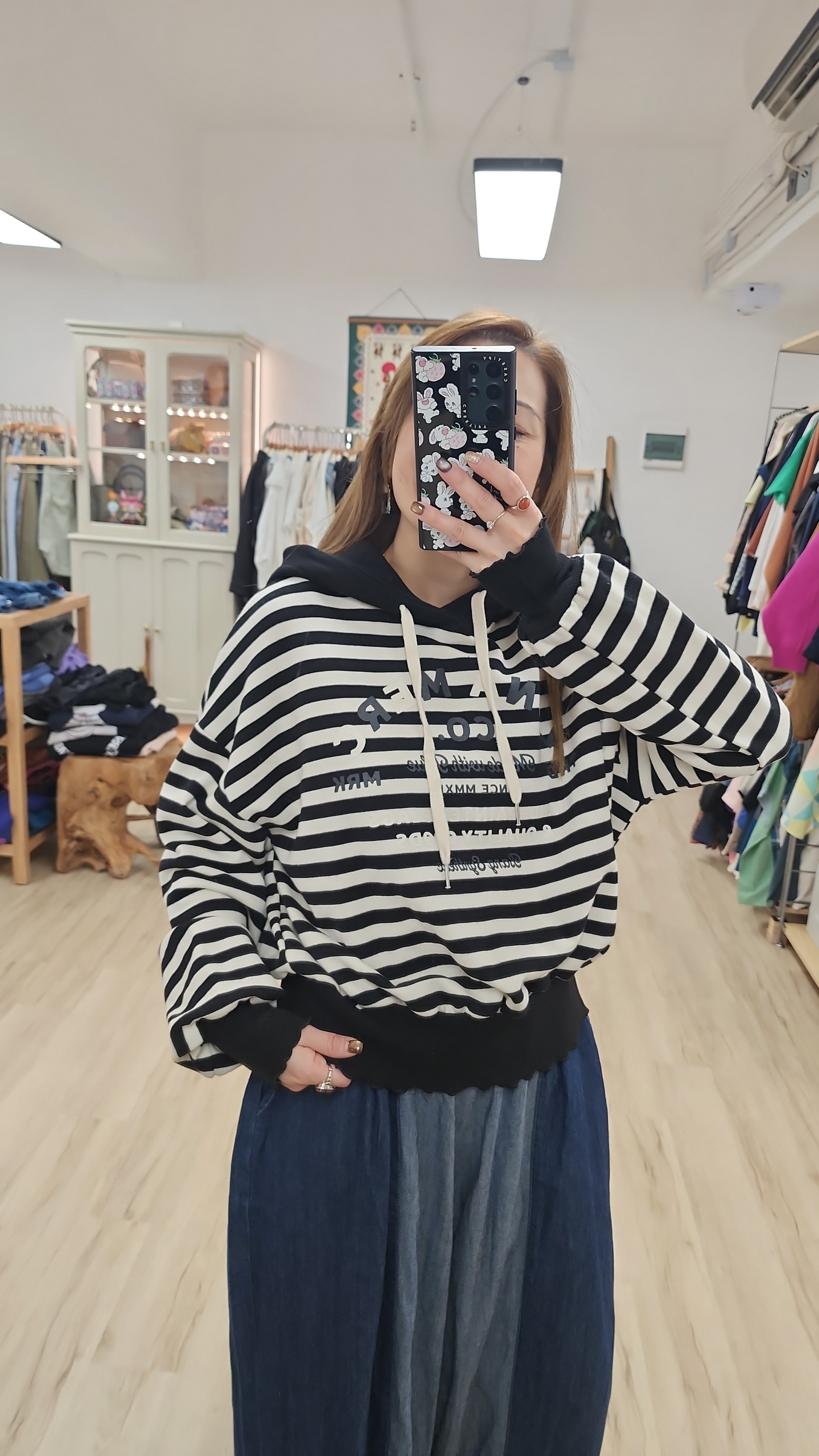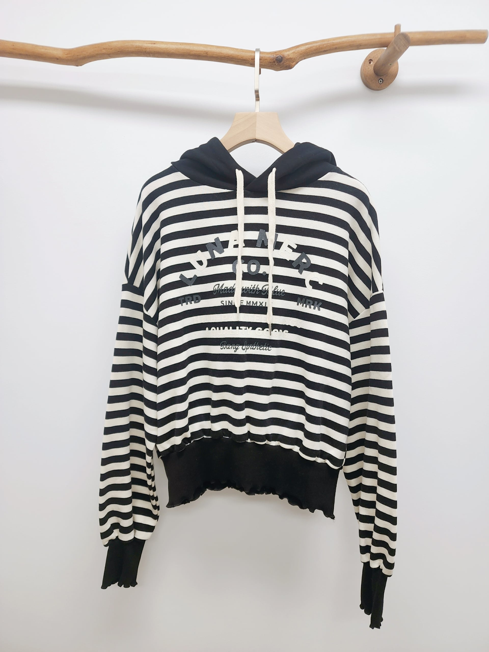 韓國黑白橫間印字衛衣